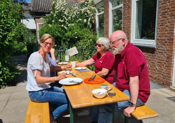 Jeder steuerte etwas zum Mitbring-Buffet bei, so dass wir in der Mittagspause draußen, bei leckerem Essen, neue Kräfte sammeln konnten und auch etwas Sonne tanken.