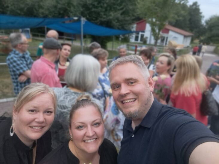Sie wurde noch beschenkt von unseren Gastgebern und es blieben alle, um gemeinsam noch den lauen Sommerabend ausklingen zu lassen.